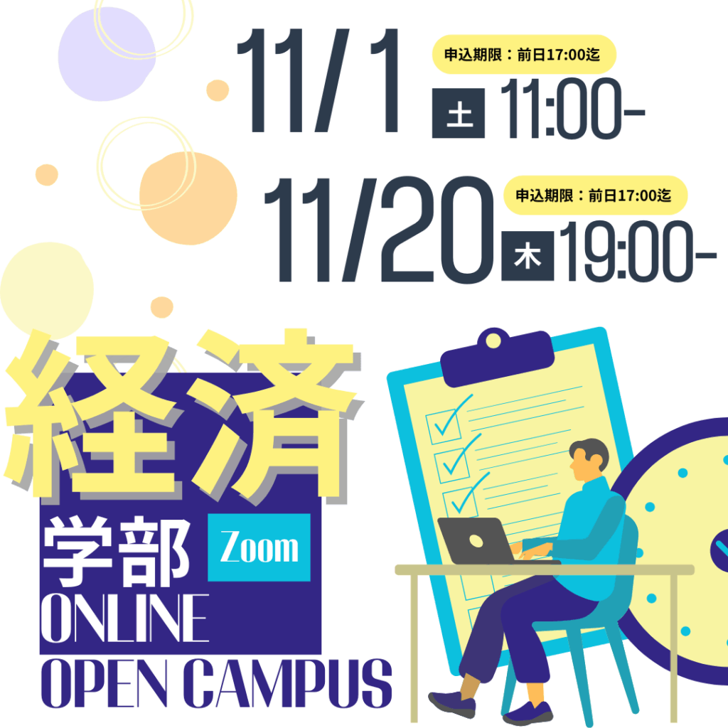 以下のとおり、経済学部(新潟産業大学)の、11月のオープンキャンパスを実施いたします。