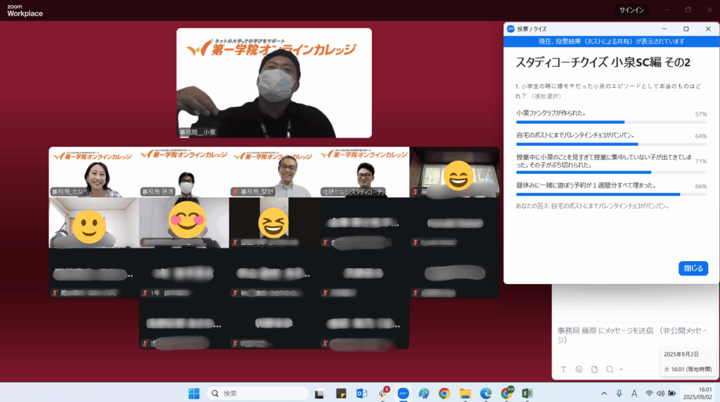 自分の担任以外のスタディコーチのことも知り、今後相談できる相手が増え、より第一学院オンラインカレッジに安心感を持ってもらえるような会を目指しました。