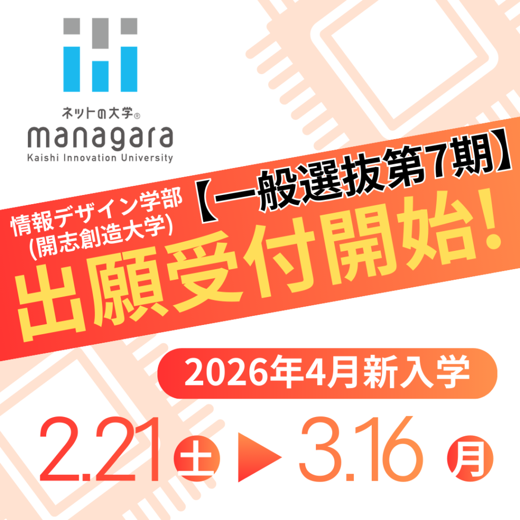 情報デザイン学部の〔一般選抜第7期〕出願受付を開始いたしました。入試区分や募集スケジュール、必要書類等も併せてご確認ください。