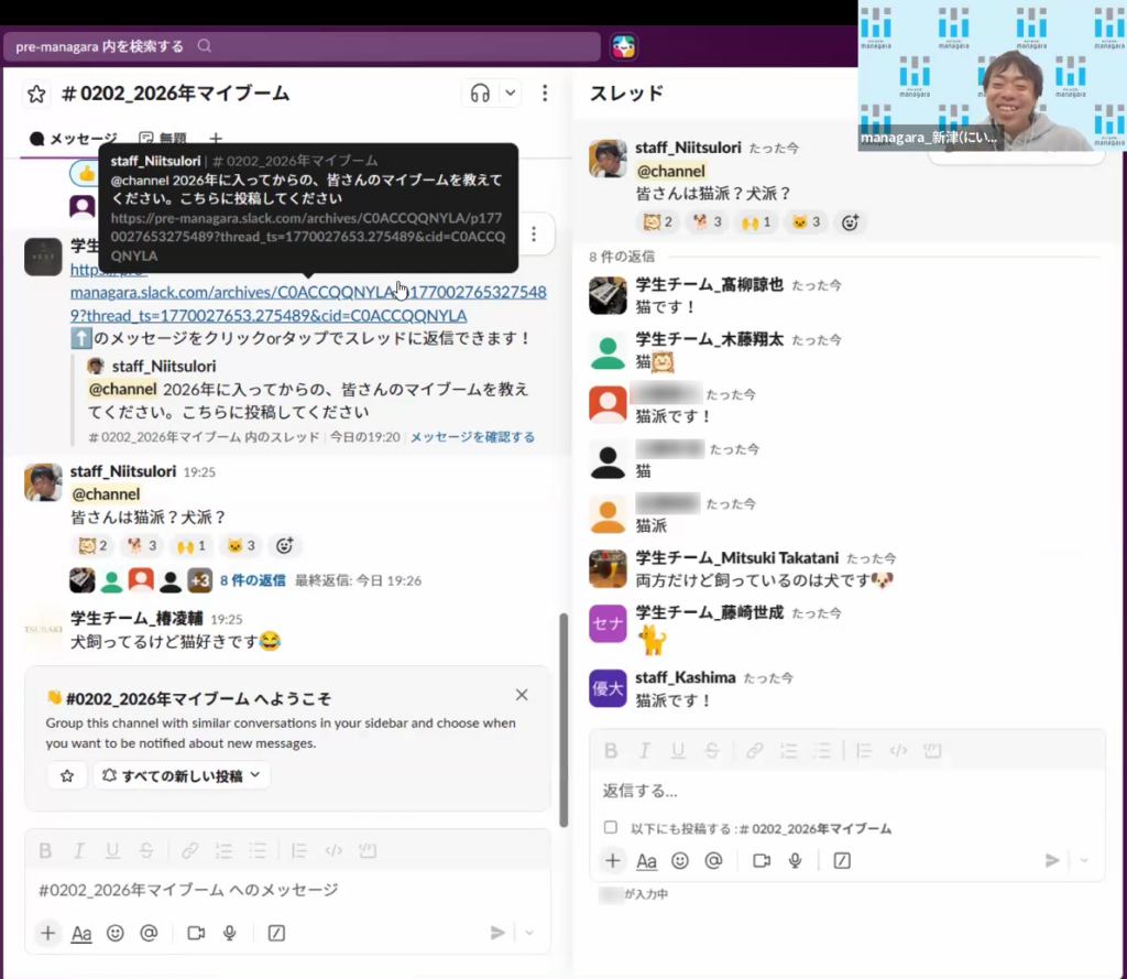 「次回のmanagaraカフェがもしあったら積極的に質問したいです。入学がとても楽しみになりました」
