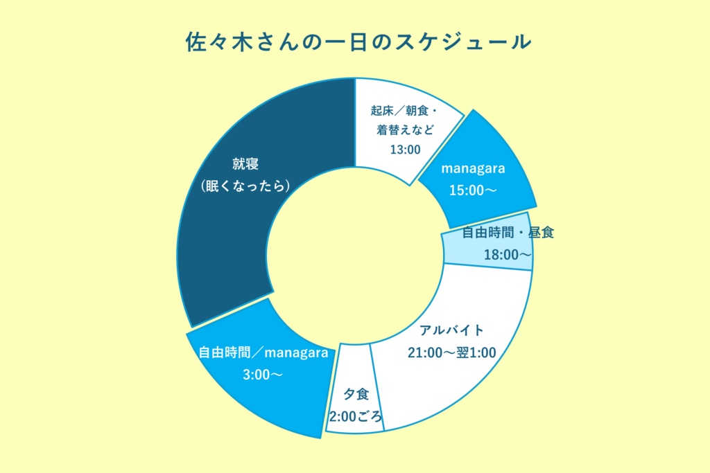 現在ネットの大学 managara経済学部スタンダードコースで学びを深める佐々木海瞳(かいと)さんは、「起立性調節障害」から起こる身体的不調をポジティブに捉えて、今の自分に無理のない学修スタイルをmanagaraで確立したそう。そこには佐々木さんの「こだわり」とmanagaraの学びに対する「分析力」の高さがうかがえました。この取材では、周りの人たちから受けたアドバイスやサポートを通じて感じた思い、憧れなども深く関わってくるmanagaraでの大学生活と学修におけるモチベーション維持、将来の夢についてお話を伺いました。